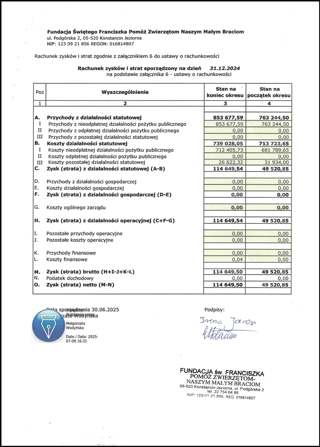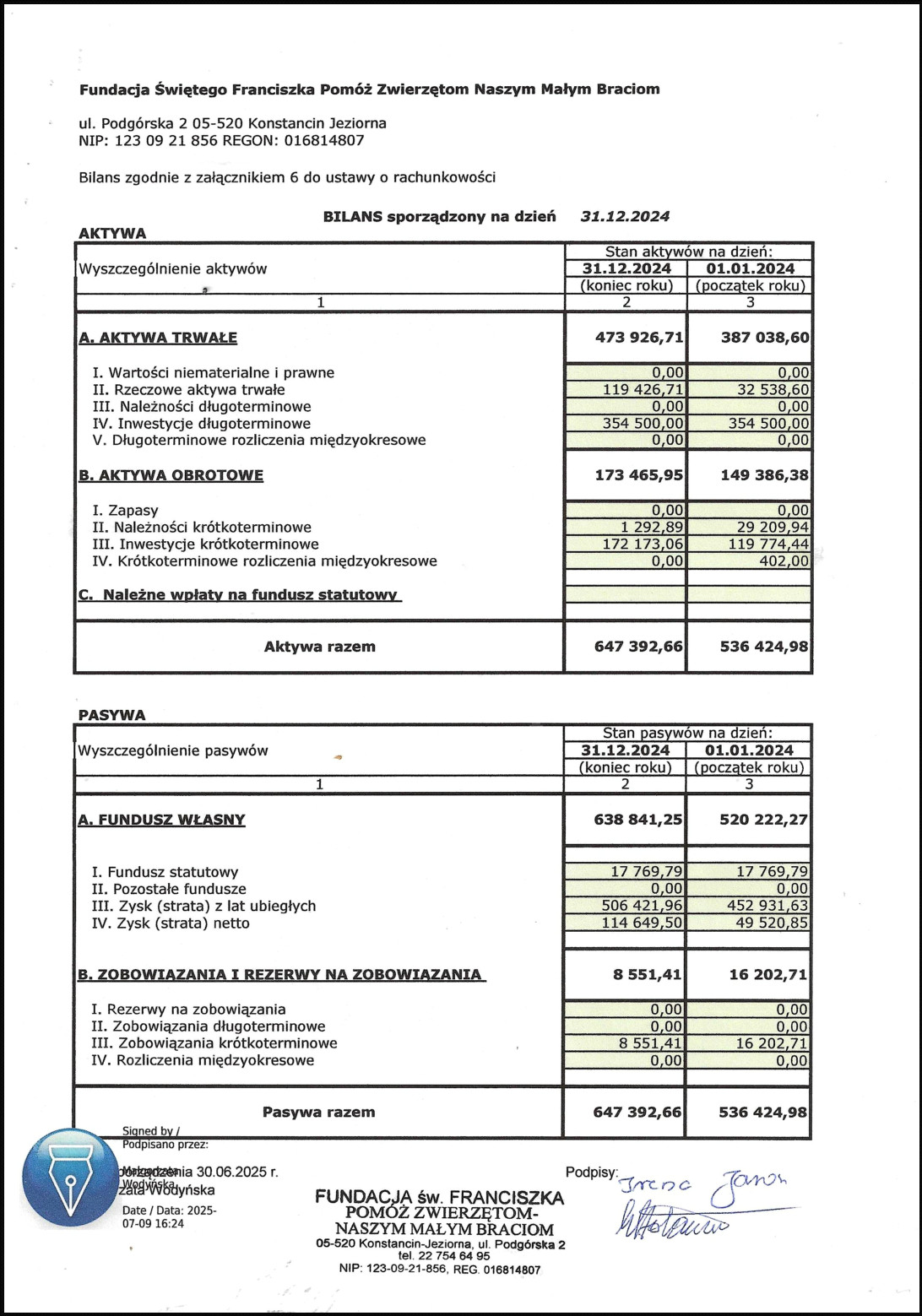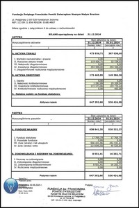 BILANS Kliknij na miniaturkę poniżej, lub pobierz plik PDF: LINK ![]() WSTĘP DO SPRAWOZDANIA MERYTORYCZNEGO Kliknij na miniaturkę poniżej, lub pobierz plik PDF: LINK ![]() SPRAWOZDANIE MERYTORYCZNE Kliknij na miniaturkę poniżej, lub pobierz plik PDF: LINK ![]() RACHUNEK ZYSKÓW I STRAT Kliknij na miniaturkę poniżej, lub pobierz plik PDF: LINK ![]() INFORMACJA DODATKOWA Kliknij na miniaturkę poniżej, lub pobierz plik PDF: LINK ![]() UCHWAŁA NR 1/2025 Kliknij na miniaturkę poniżej, lub pobierz plik PDF: LINK ![]() UCHWAŁA NR 2/2024 Kliknij na miniaturkę poniżej, lub pobierz plik PDF: LINK ![]() |